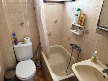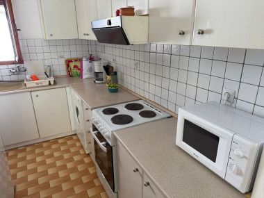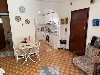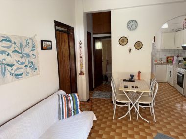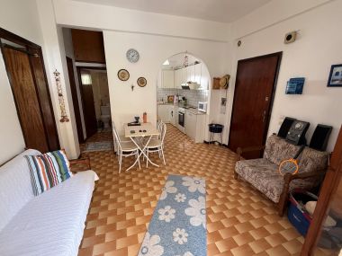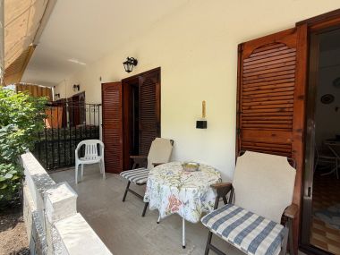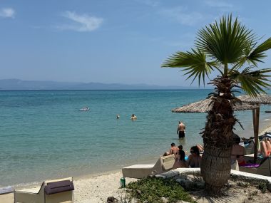 The apartment is located in a green and very quiet residential complex, just 50 meters from the sea. It is on the ground floor, has an area of 56m², and includes two bedrooms, a living room, a kitchen, a balcony, a small plot, and a parking space for one car. A great option for rental. The building was constructed in 1990. Price: €170,000.