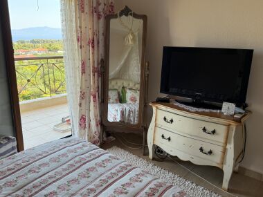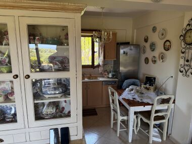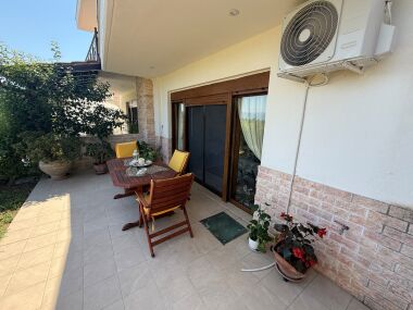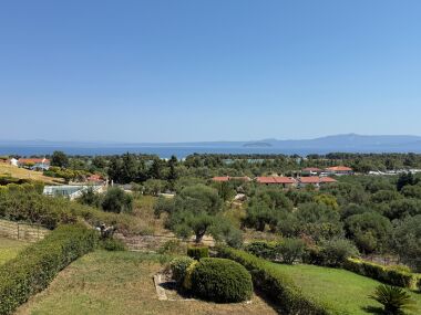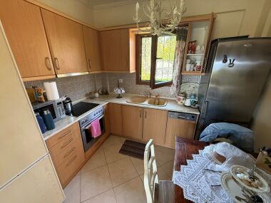 For sale is a beautiful furnished townhouse in the area of Glarokavos - Pefkohori. The house of 80 m2 is located on a small hill from where a panoramic view of the bay, the peninsula of Sithonia and Mount Athos opens up. The house consists of two floors, where there is a living room with a kitchen with an exit to the terrace and the plot, three bedrooms, a bathroom, a shower and huge balconies. There is a well-landscaped area, a fireplace, air conditioning, parking. The house is fully furnished and equipped with all the necessary electrical appliances.